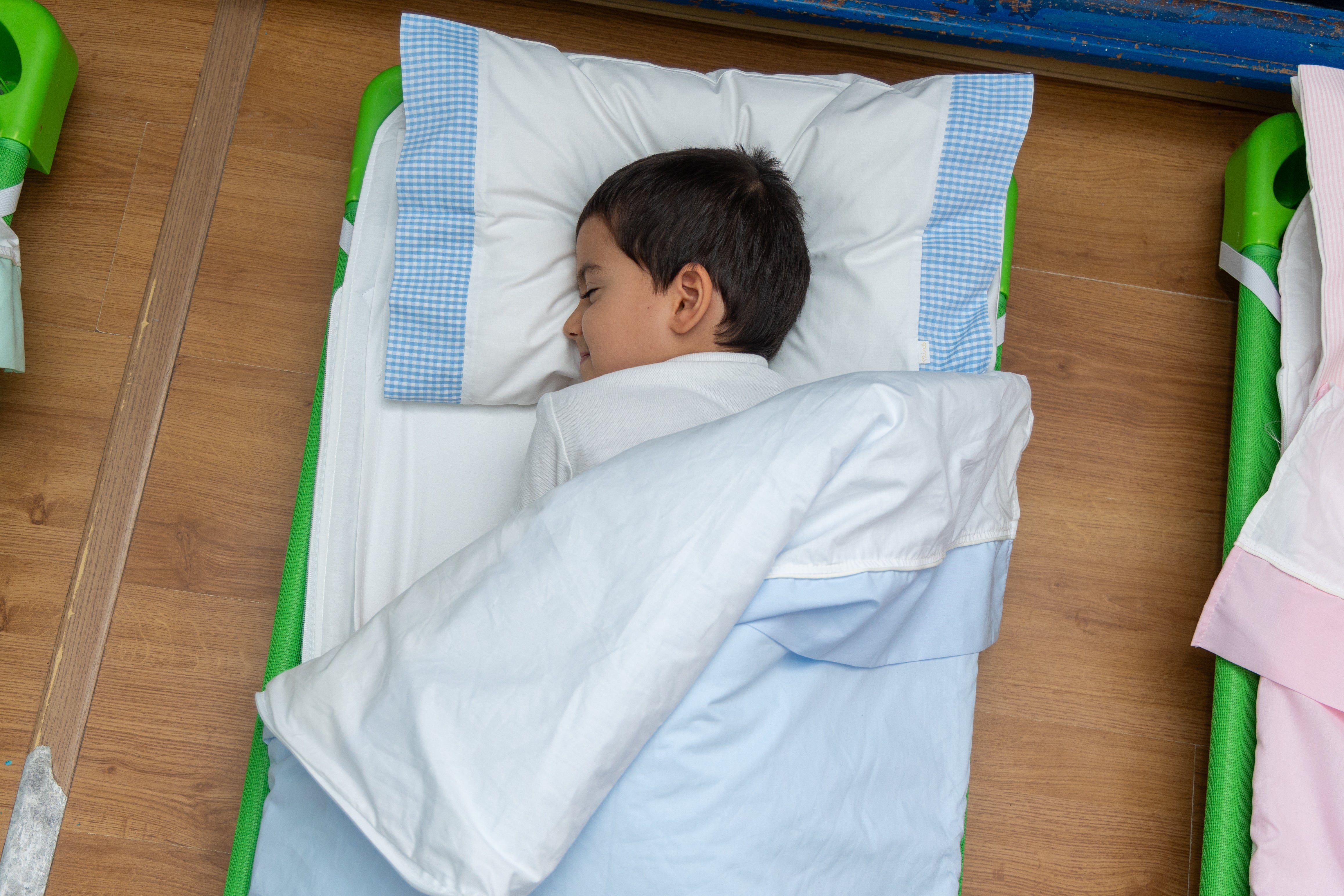 A almofada Minô é indicada para crianças a partir dos 18 meses, com a altura e o enchimento ideais para apoiar suavemente a cabeça e o pescoço.